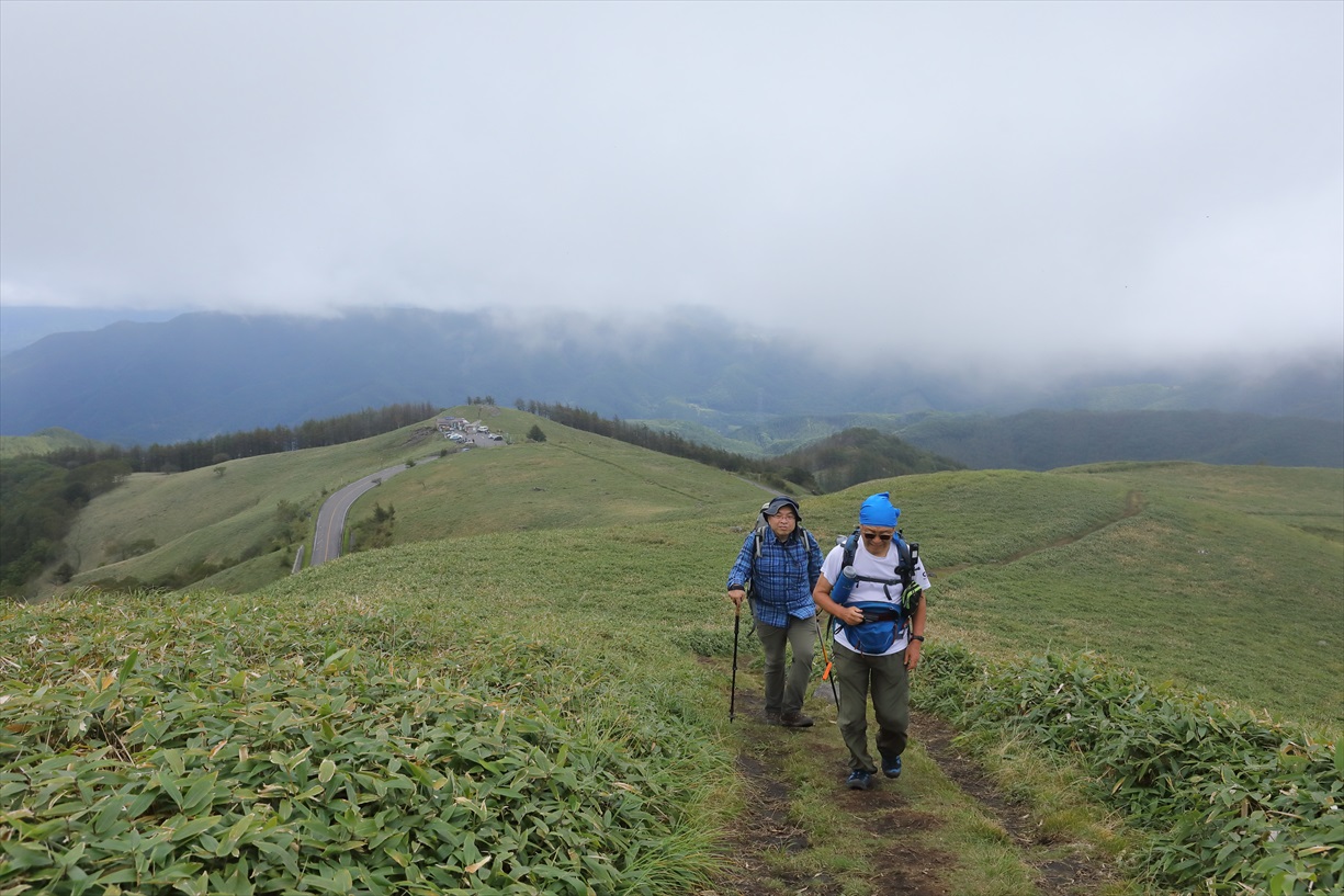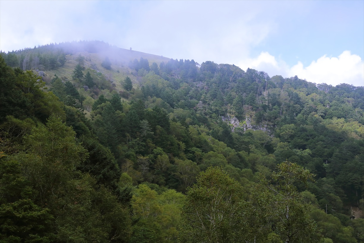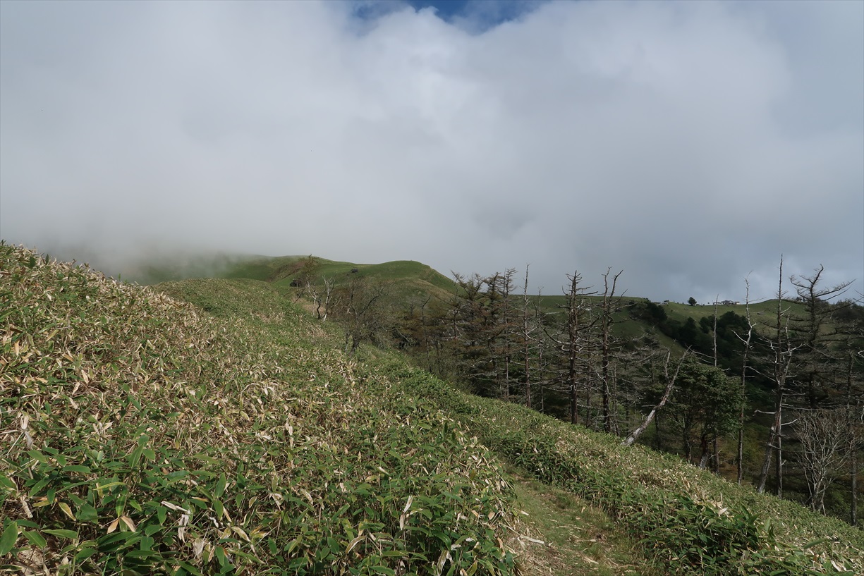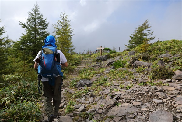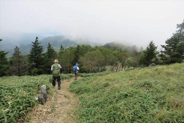 | 雲に隠れている場所が目指す茶臼山 それにしても茶臼山山頂は遠いな〜(ノД`) |