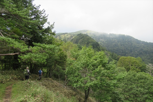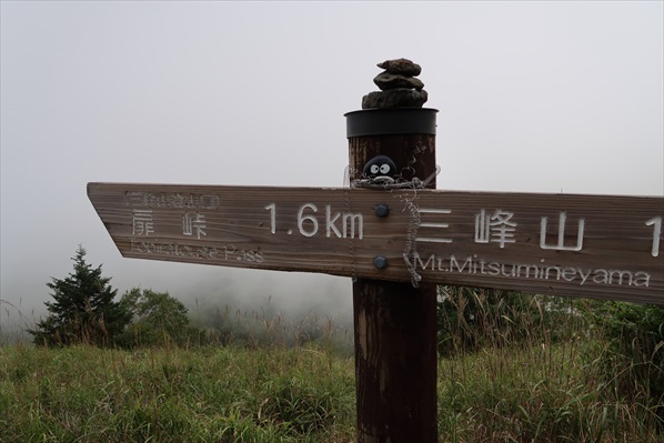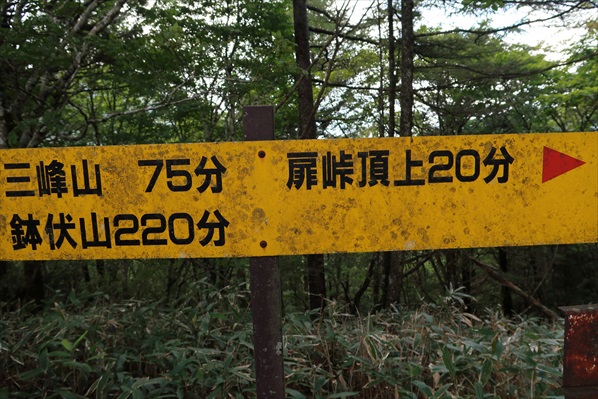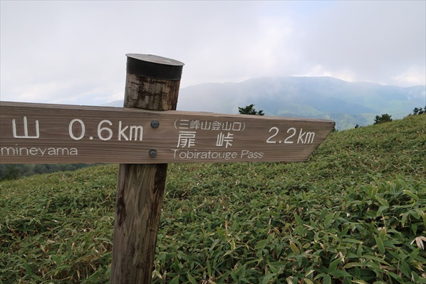 | 写真右側に三峰茶屋の建物が見える ルートから外れているので立ち寄らないが緊急時(水分補給やトイレ)には役立つかも・・・ |