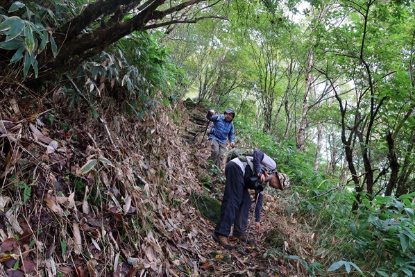 | 小雨によるスリップ転倒に神経をつかい激下りの写真は一枚もないけれど鷲ヶ峰からの下りは要注意です (下段高低図参照) |