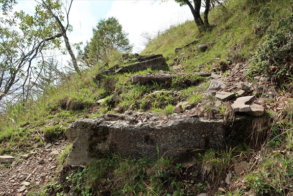 | 疲労困憊の身にはキツすぎる急斜面 | 風化が進んだコンクリート階段 | |||