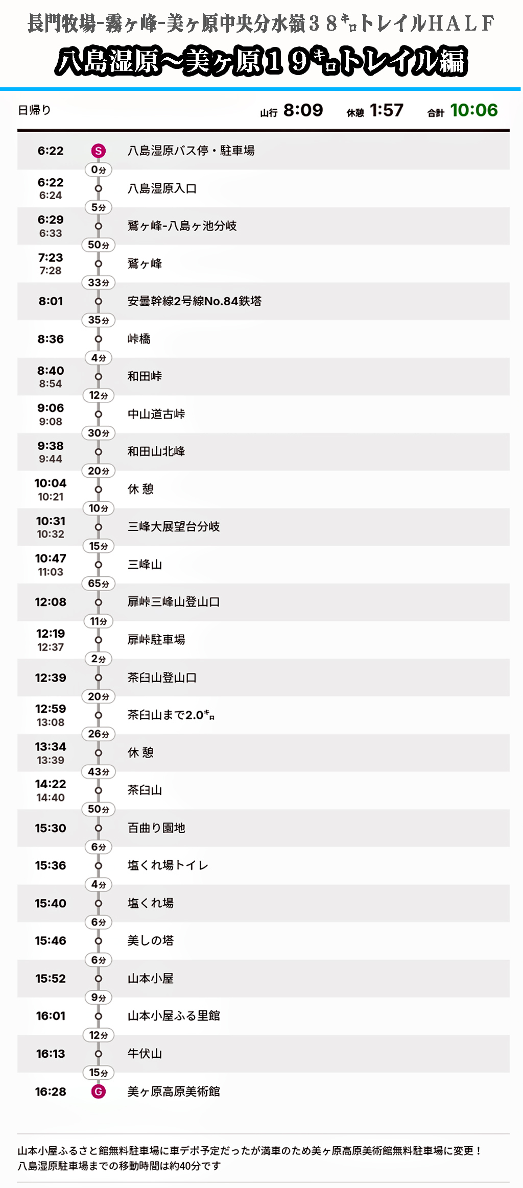| 《八島湿原〜美ヶ原コースタイム他》 写真撮影時間20分〜100分含む |