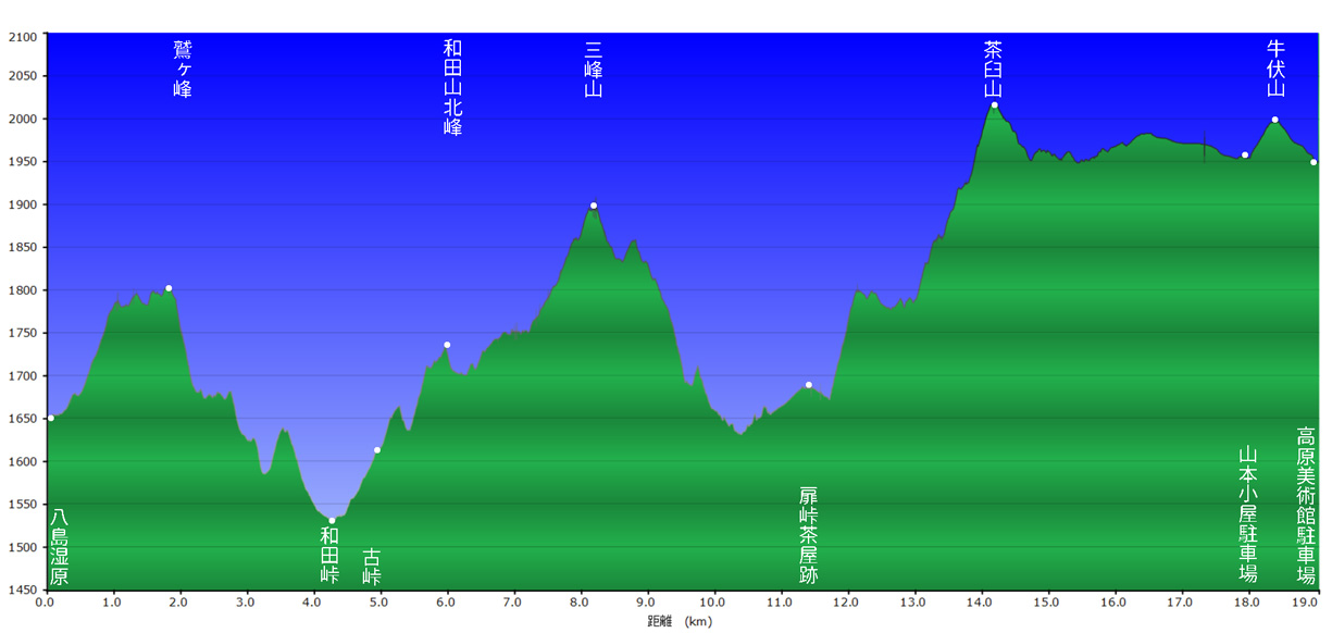 | 八島湿原〜美ヶ原19`高低図 | ||||