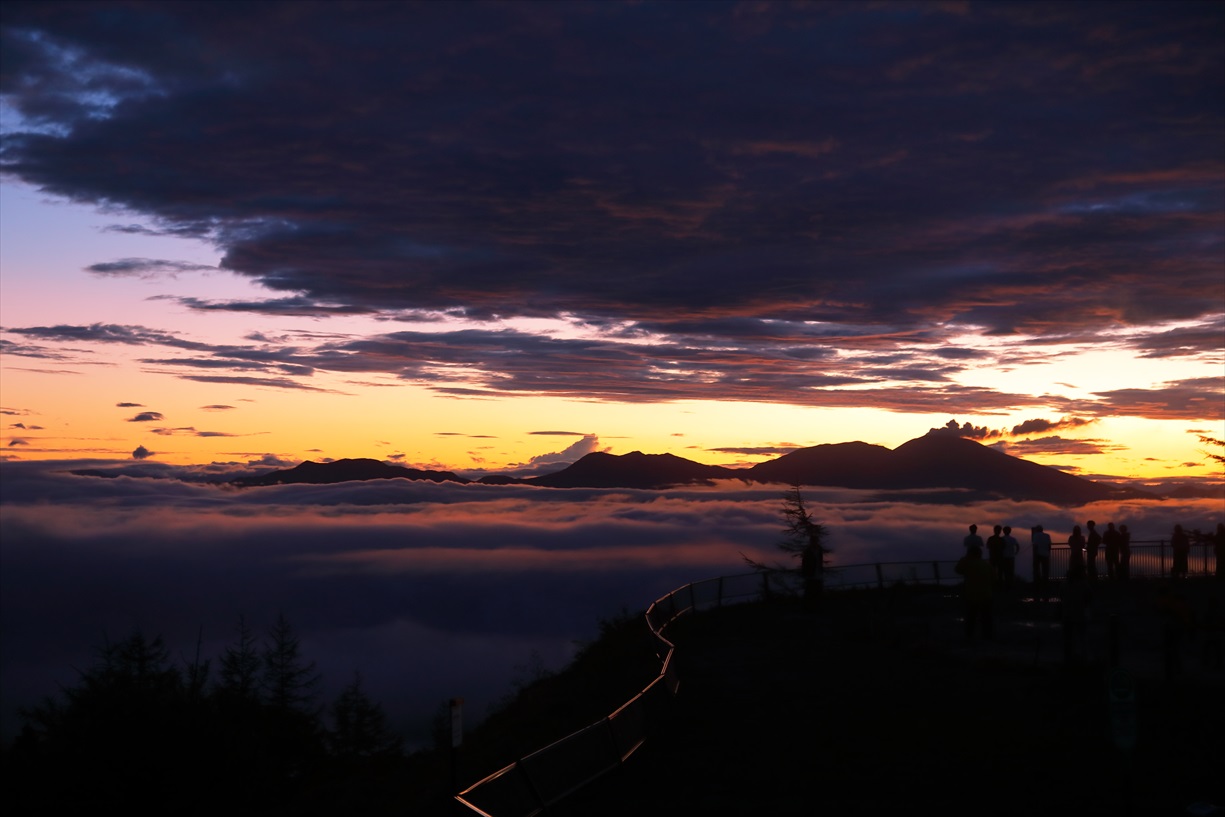 | AM 5:00 山本小屋ふるさと館駐車場からの展望 ここに車をデポして八島湿原駐車場へ向かう予定だったが満車のため「道の駅・美ヶ原高原美術館駐車場」に変更 |