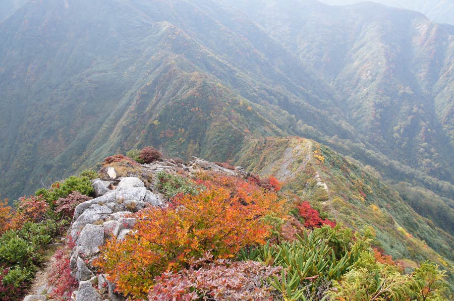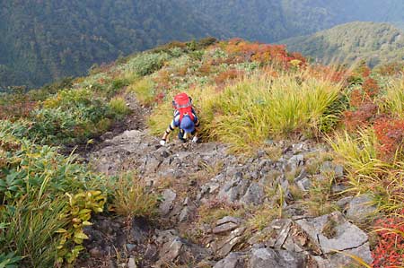 | 両サイド切れ落ちた要注意箇所 | 紅葉を目の当たりにして足取りも軽くなる | |||
