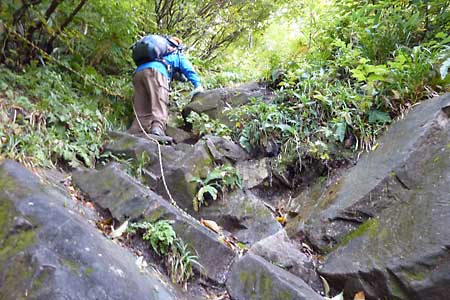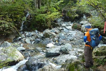 第2渡渉終了後、ここから支尾根に取り付く | |||
