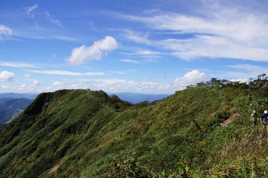 振り返れば当ルートがいかに痩せ尾根歩きかを視認できる/左隅・鎌ヶ峰 |