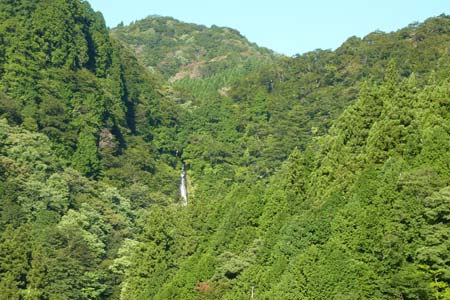 前日観光の阿弥陀ヶ滝が見える |