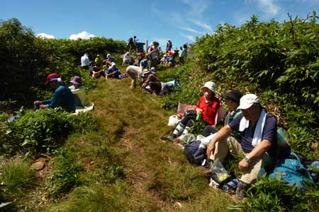 ひるがの方面からの登山者も多く山頂は大賑わい |