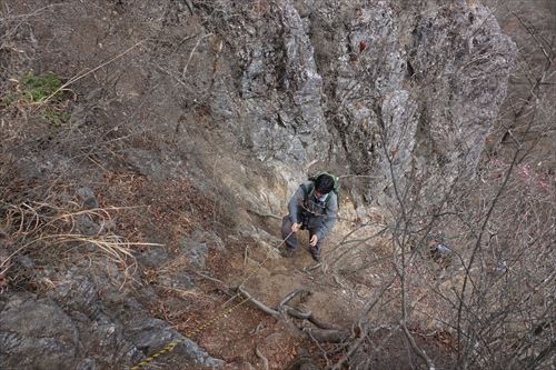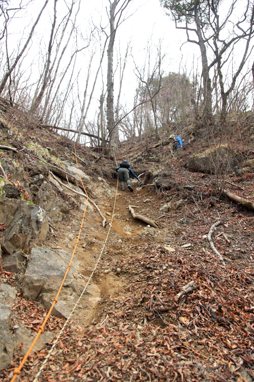 鞍部からは、2箇所のトラロープを使って山頂マデ約5分 |