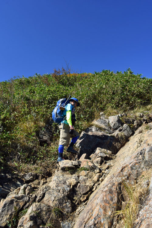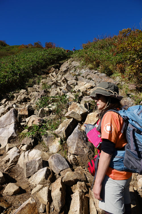 | 前駒〜駒ノ小屋の区間は以下の写真のようにザレ場・ゴーロ道・岩場が連続するので慎重に歩を進めたい | ||||