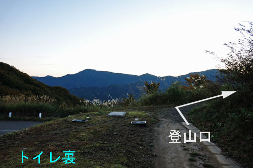 | トイレ裏が越後駒ヶ岳登山口 (トイレ前に登山届けBOXあり) |