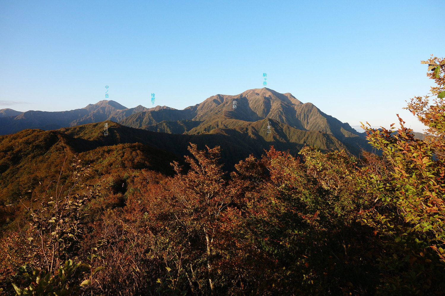 | 越後駒ヶ岳からのパノラマ図解あり 越後駒ヶ岳 2003M |