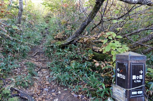 | 道行山への登り | 道行山分岐点・駒ヶ岳まであと4.7` | |||