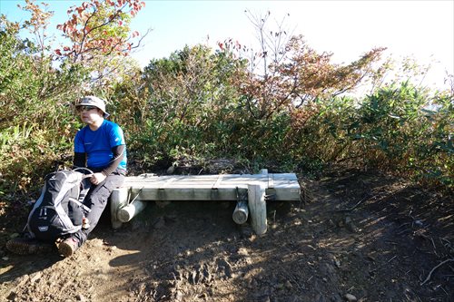 | 《↑画像クリックで拡大表示》 ベンチから越後駒ヶ岳(左奥)・小倉山(右上)を望む |