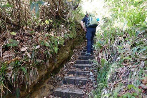 | 当ルートは自然保護目的の木階段が数多く設けられている | 爺、階段は大の苦手だけれど 頑張ってここまできましたよ〜 |