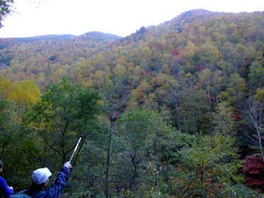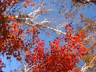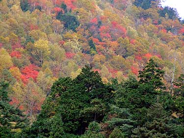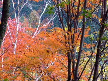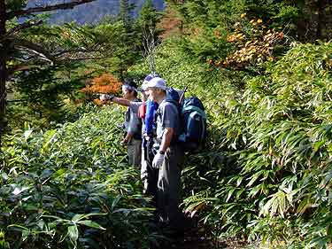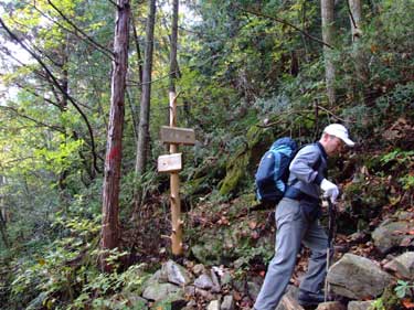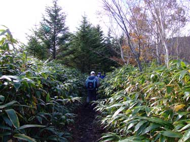 樹林と熊笹に囲まれ見通が悪い急登攀が中間点まで続くが、紅葉を楽しみながら「山頂まで100分・