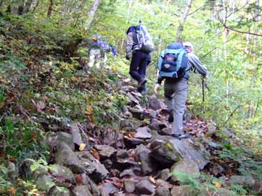 登山口から沢に架かる木橋を渡り尾根下部の登山道に取り付く。