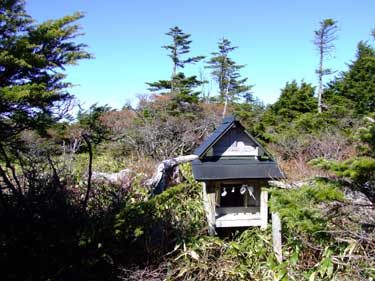 恵那山山頂には1等三角点と恵那山神社、小さな祠がある。