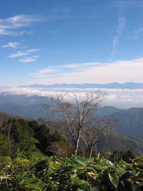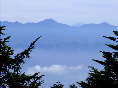ここを過ぎると間もなく左斜面笹越しに南アルプスが見え始め、高度が増す毎に中央アルプス・南アルプス