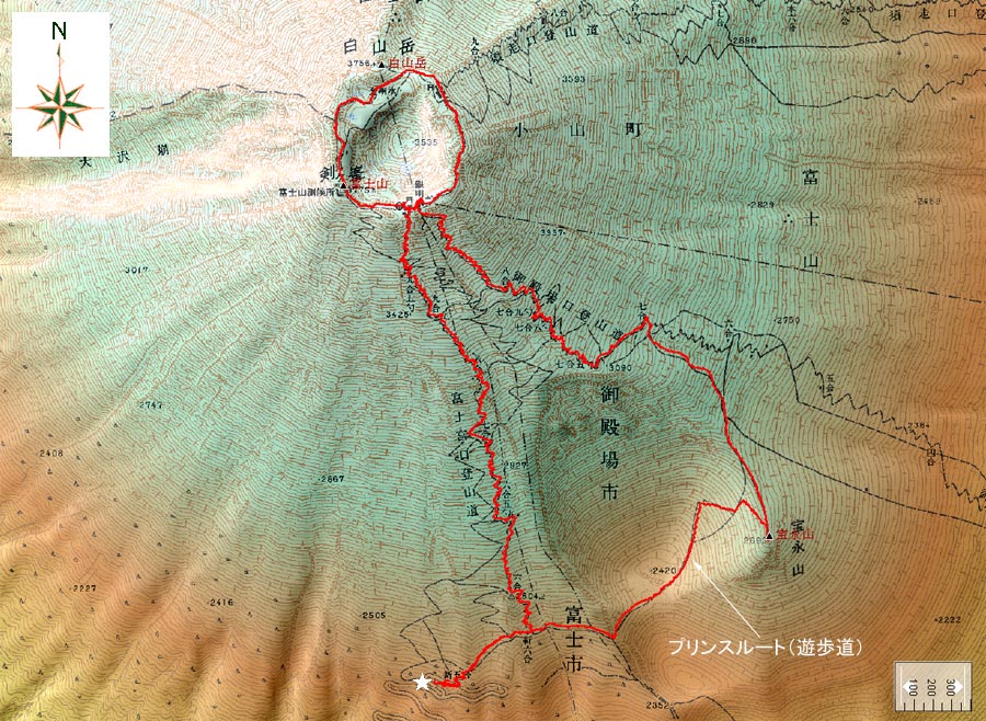 プリンスルート(宝永山噴火口跡)を下る/富士宮ルートと御殿場ルートを宝永山経由で結ぶルート