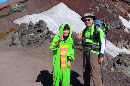 富士山本宮・浅間大社奥宮の裏手で記念撮影 |
