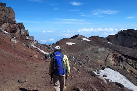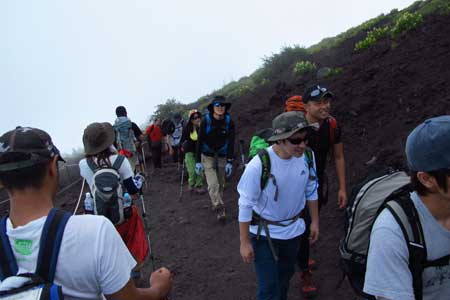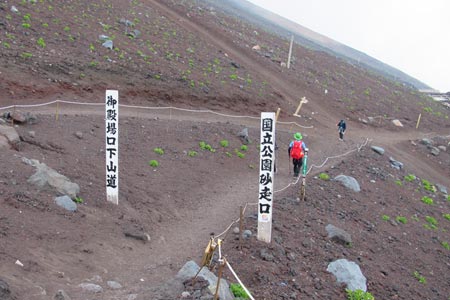 伊藤・戸谷・北澤・中村さんのピストン班 管理人・関谷さんの砂走り〜宝永山経由班に分かれて下山開始 |