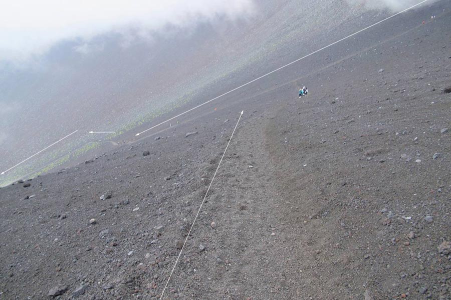 登りでは使いたくないが下りでは快適な砂走り道 |