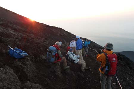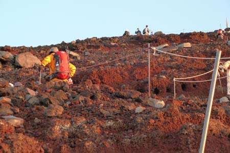 am 5:06 朝陽を浴びながら山頂を目指す |