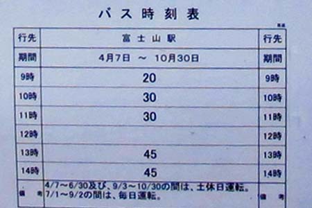 | 吉田口R登山口・馬返(簡易トイレあり) | 富士急小型バス・馬返バス停時刻表(2012年対応) | |||