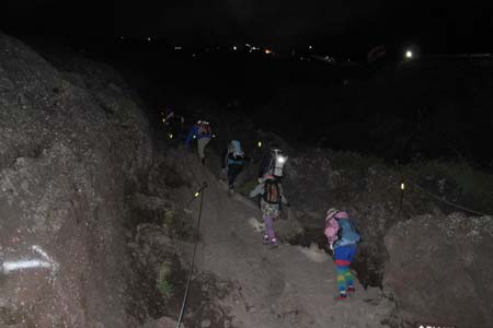 | pm 23:55-am 00:14 9/1(土曜) 富士スバルライン五合目からの登山者で大賑わい |