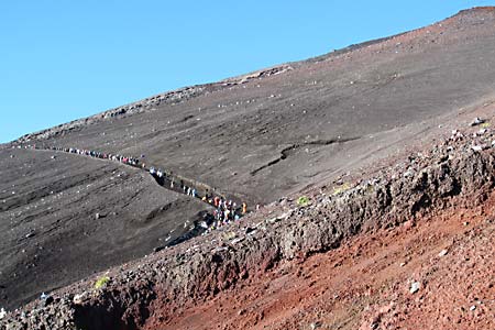 am 07:06 御来光渋滞ほどではないにしろ登山者の列が延々と・・・ |