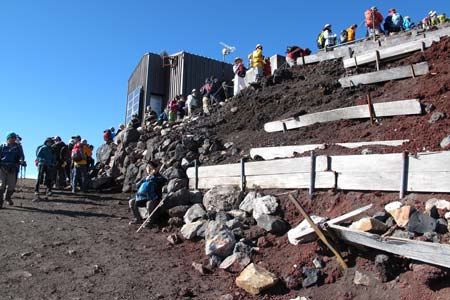 富士宮五合目を3時に出発した「ゆうゆう隊」の健脚をもってすれば、先に着いているか、