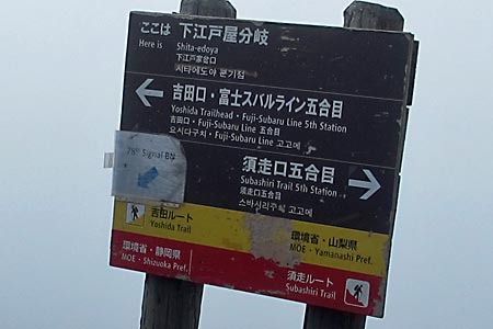 | 霧雨の須走口・吉田口R共有下山道を下る | 要注意地点 吉田口下山道・下江戸屋分岐点 |