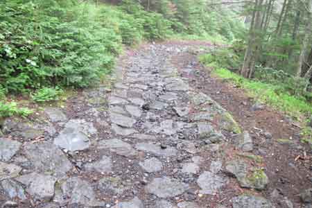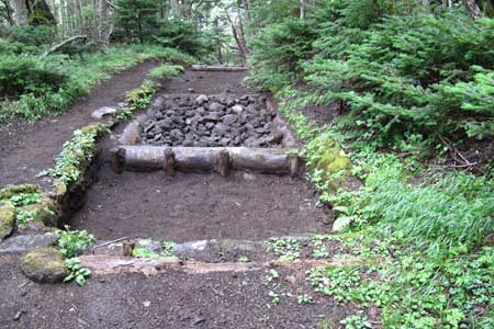 | 随所に土砂流失防止の窪地が作られている | 一合目 登山者が多く昨夜の肝試しはなんだったのって感じ(笑) |