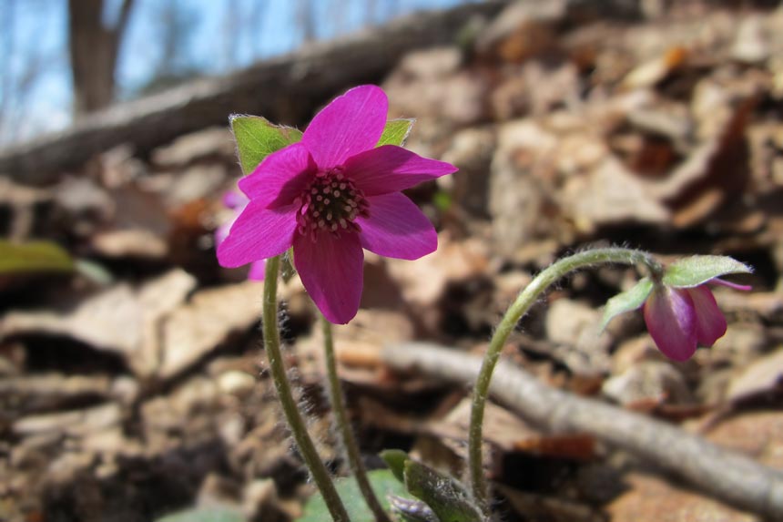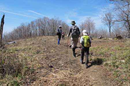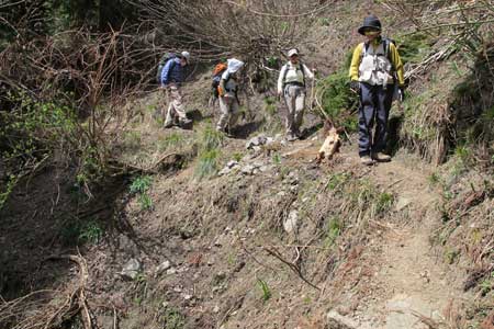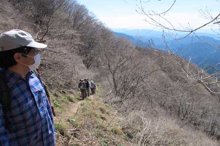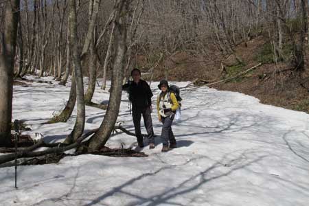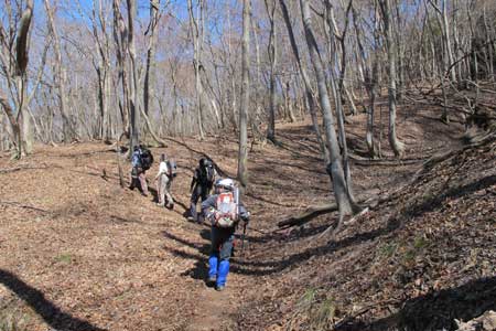 | 広葉樹林帯はカタクリ群生斜面だが例年に比べ開花が2週間近く遅れているようだ | ||||