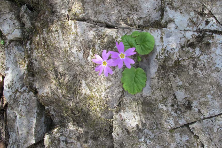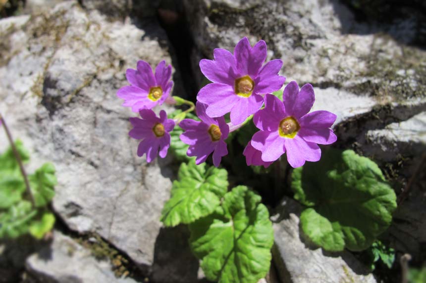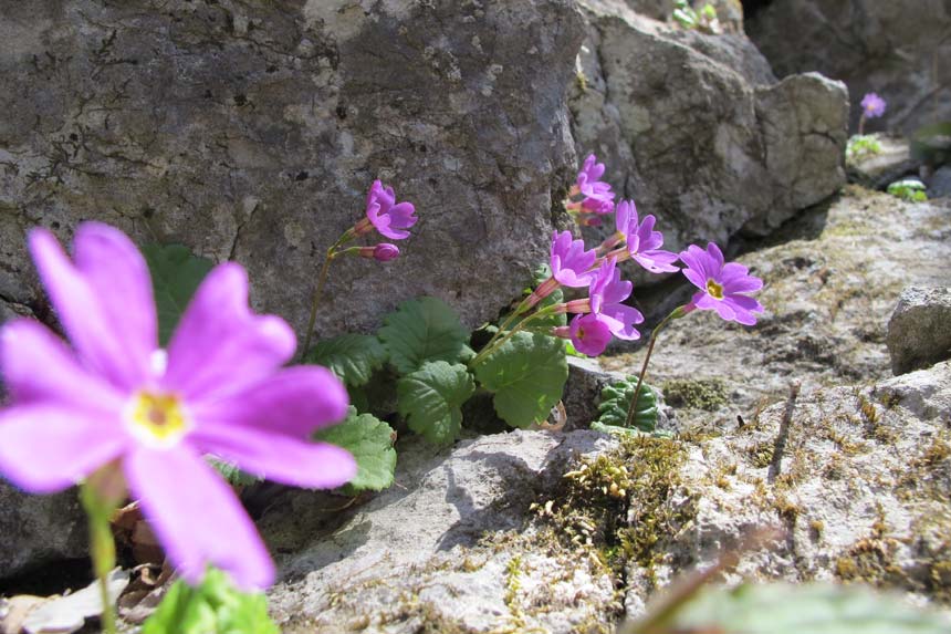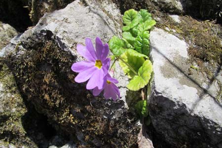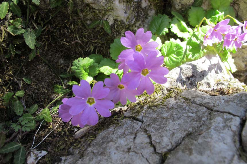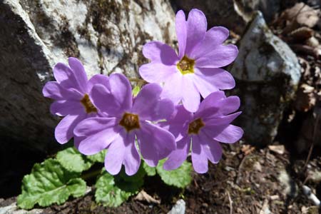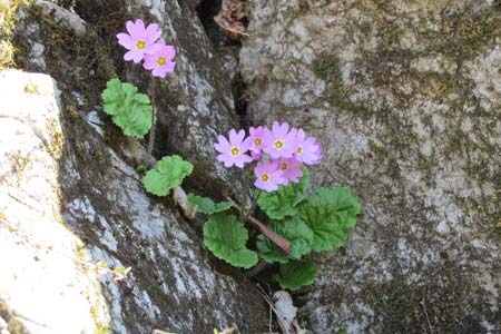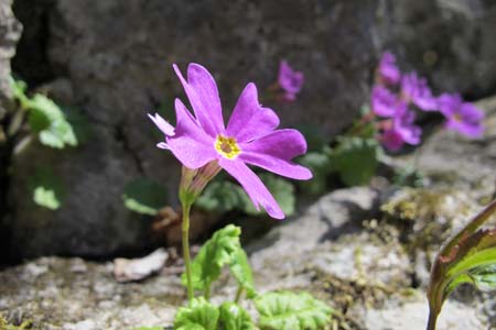 | 舟伏山のイワザクラ(岩桜) 心無い人の盗掘で個体数が激減しているそうですが咲くべきところで咲いてこそ−と肝に銘じてもらいたいものです。 |
