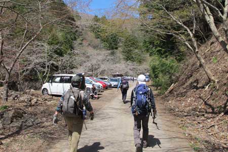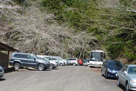 | 駐車場に到着 | 朝方は疎らだった駐車場も大型バスまで停まって大賑わい! | |||