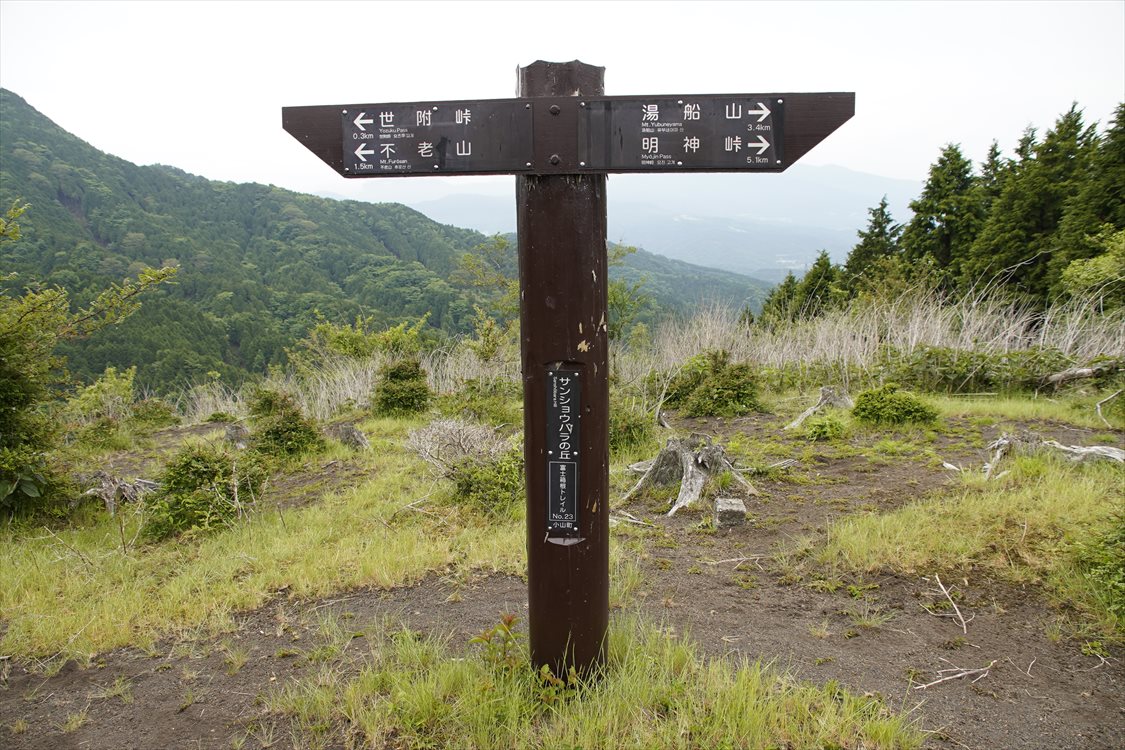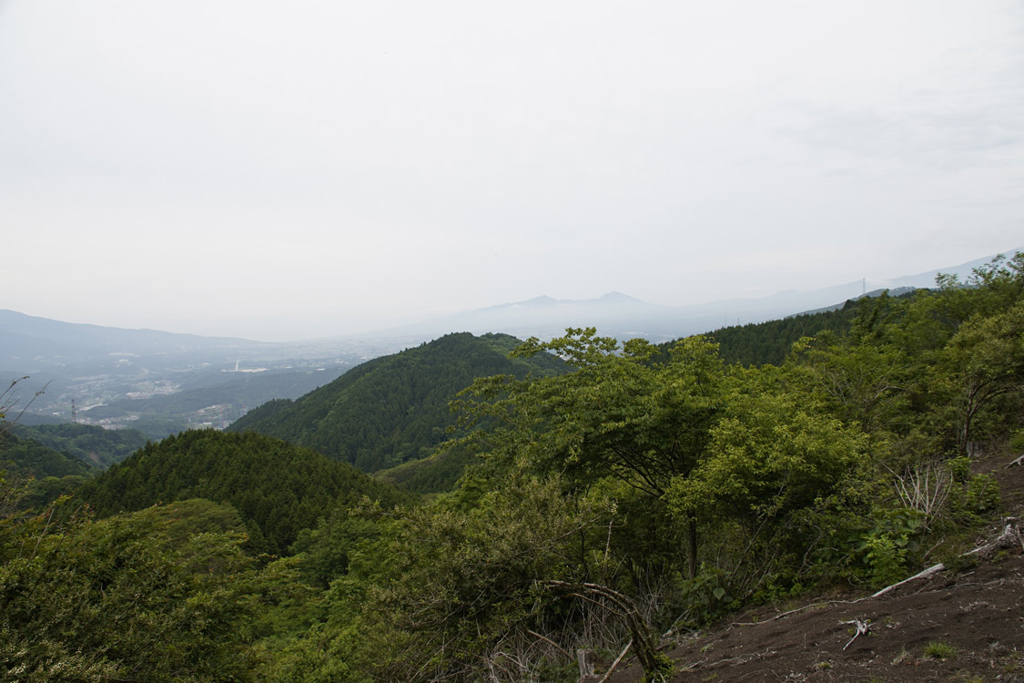| 薄らと見える双耳峰は左・位牌岳 右・越前岳 | ||||