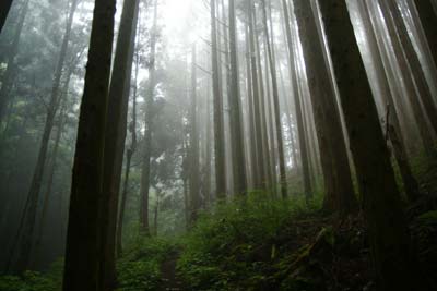 杉林を抜け沢が近づくとひと歩きで石祠が祀られた「御神体の滝」にでる。