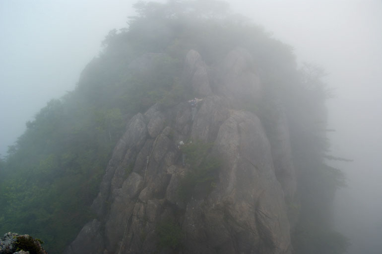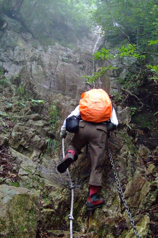 ここからが本日のハイライト! 30bの垂直に近いクサリ場を小石の落に気をつけて登りきれば女体山・