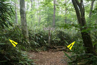 (月山新道・沢コース・尾根コース)に着く。