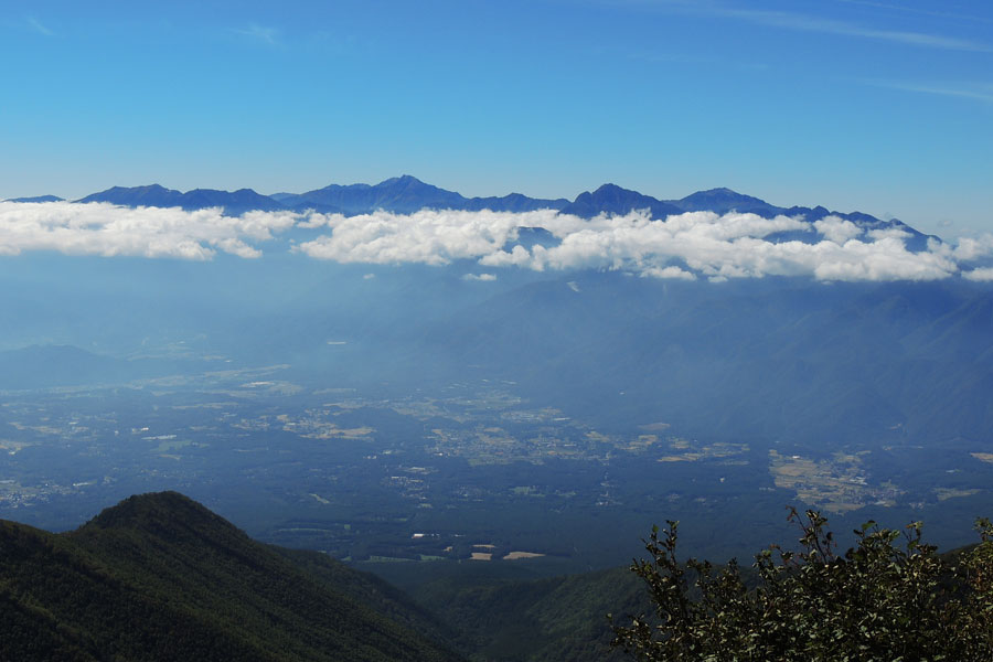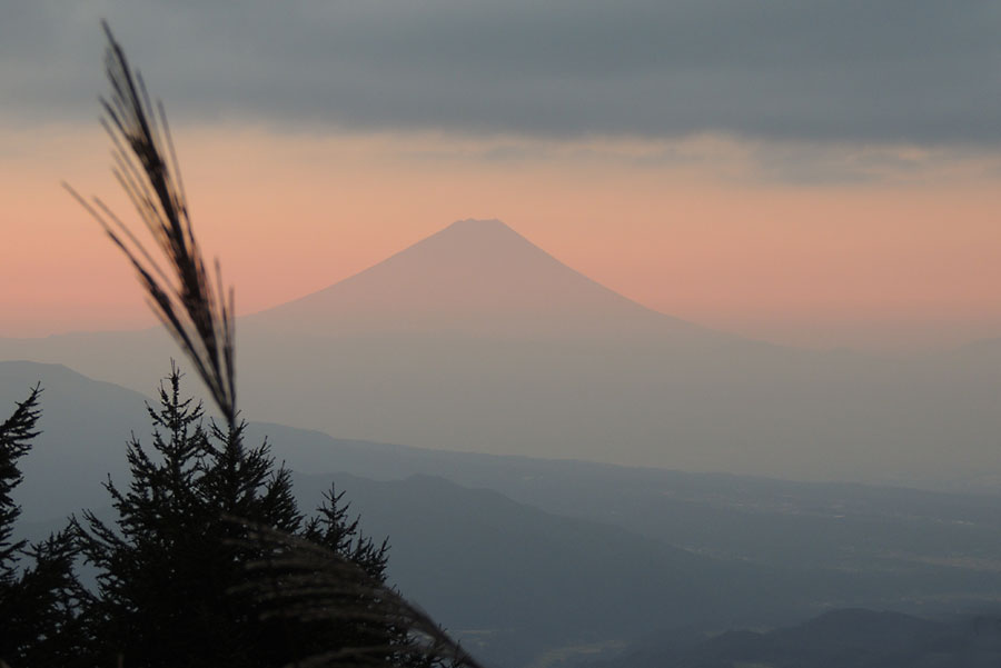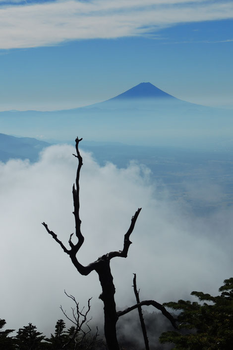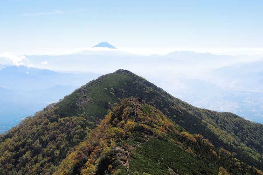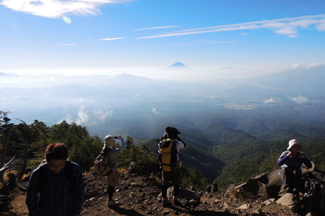 振り返れば/手前から奧三ツ頭・三ツ頭・富士山 |