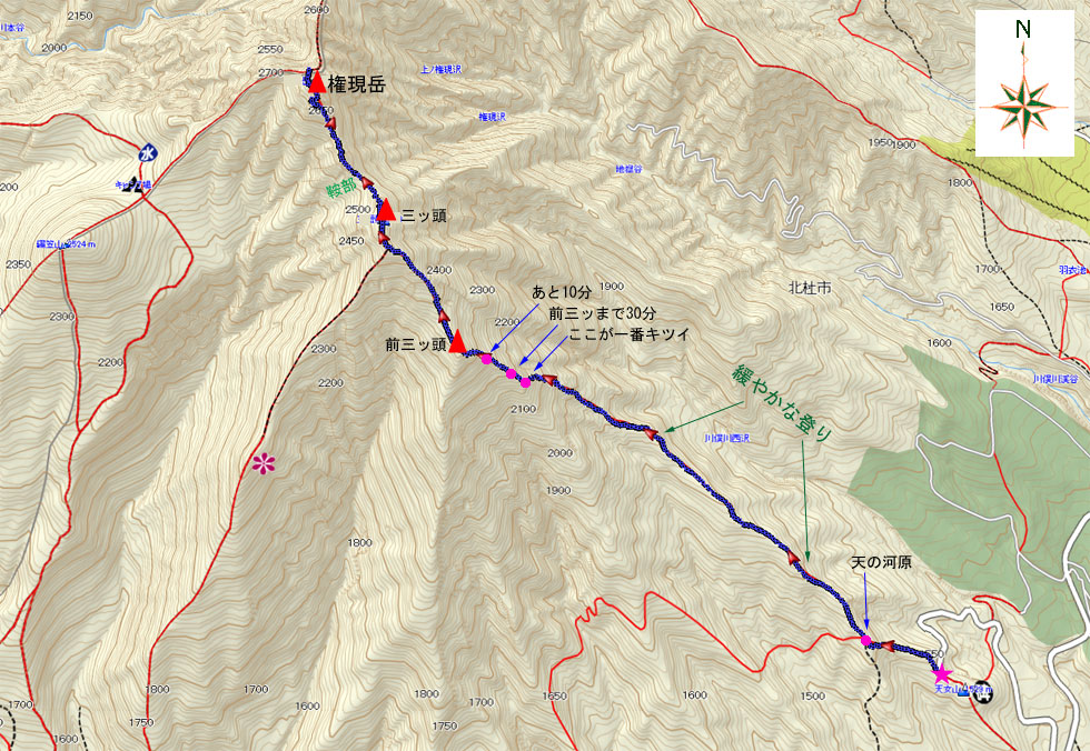 前三ツ頭までの急登をクリアできれば9割方権現岳を制覇したと言ってもいいだろう!! |