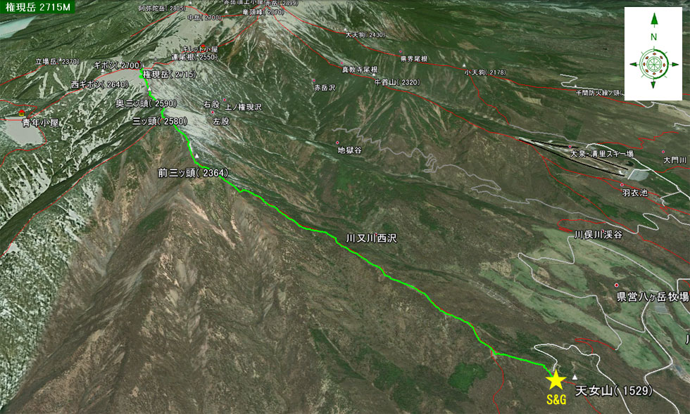 天女山駐車場標高/1530M 標高差/1185M 総歩行距離/11741M |