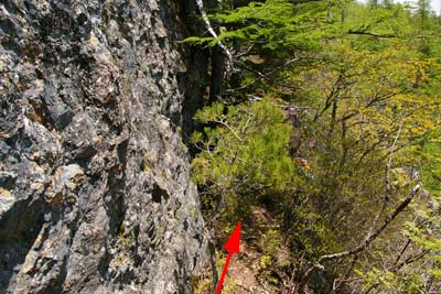 間違いに気付き岩稜左側面の正規ルートに戻る