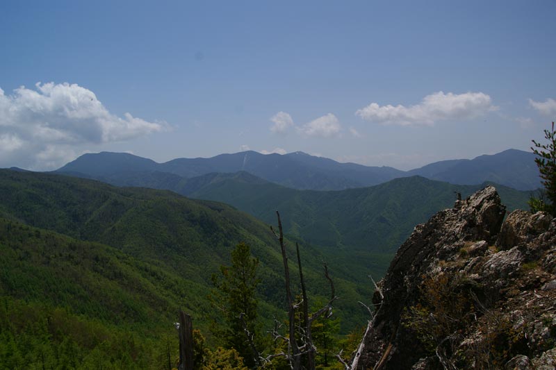 国師ヶ岳・朝日岳・金峰山の展望が素晴らしい/東肩より |
