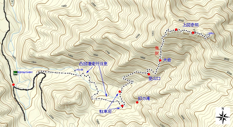 (注)大岩からマキヨセノ頭の間は急坂の為、下山時は落やスリップに要注意!! |
