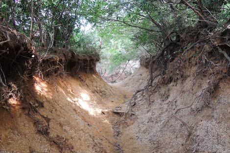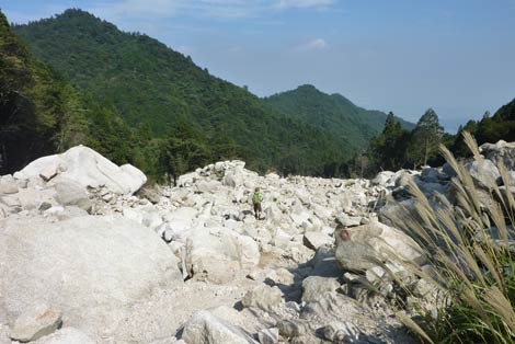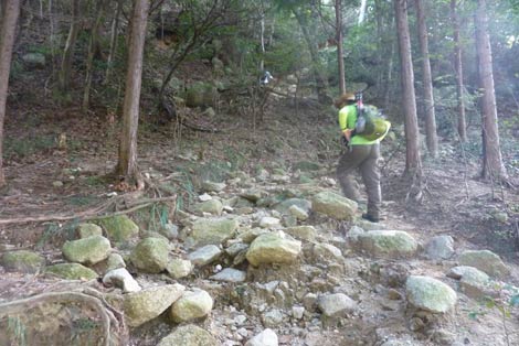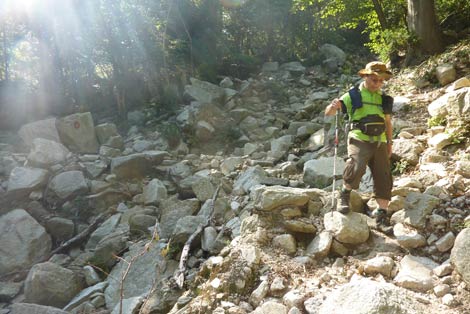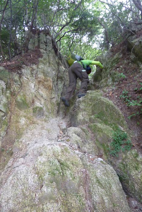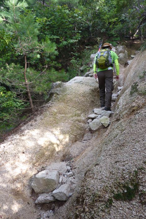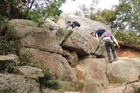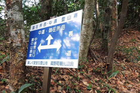 裏登山道は初心者用ルートと案内されるが豪雨災害の影響で歩きにくい箇所が多いので要注意 |