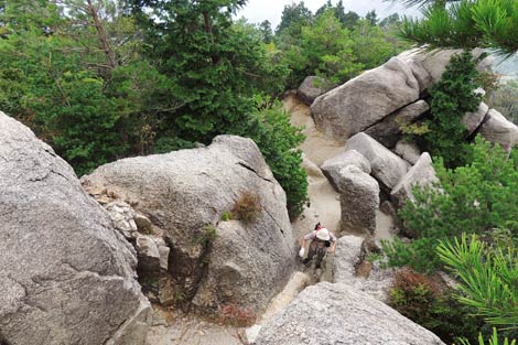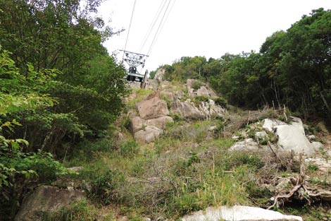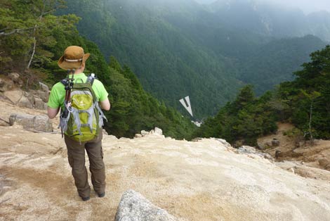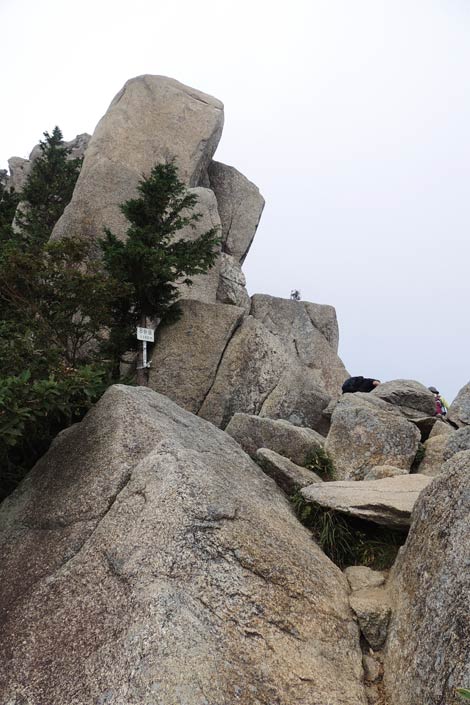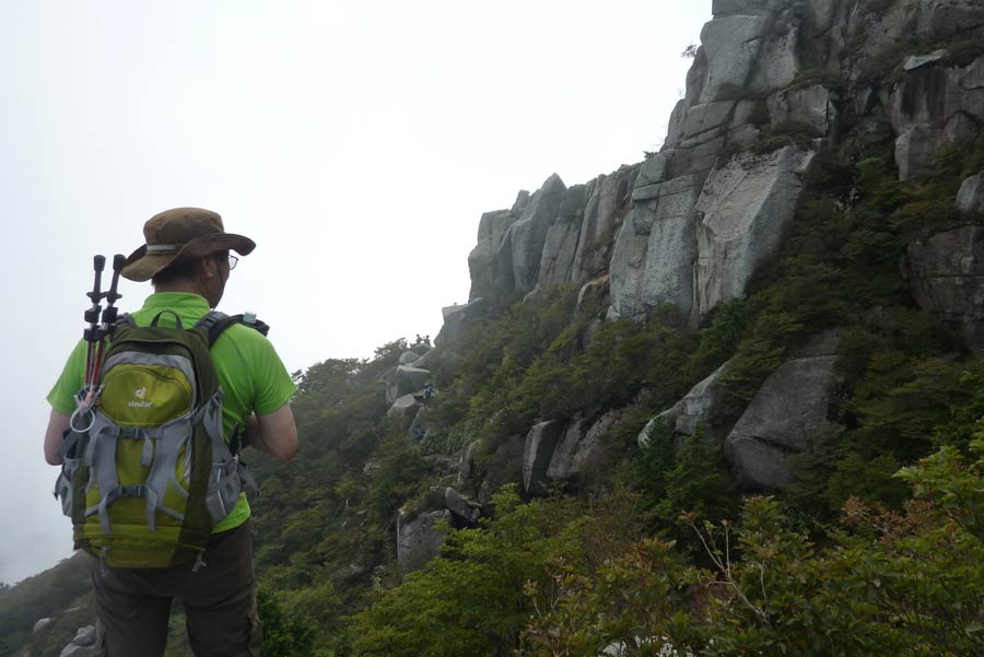 八合目要注意箇所の拡大写真/写真中央に登山者が見える |