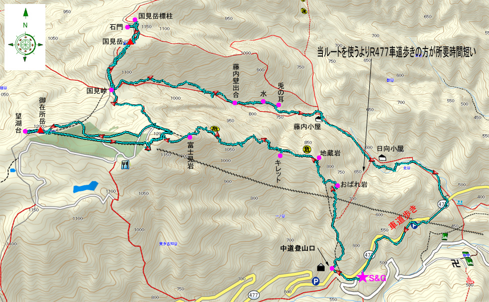 駐車場からR477を北に100bほど歩いた場所が登山口 |